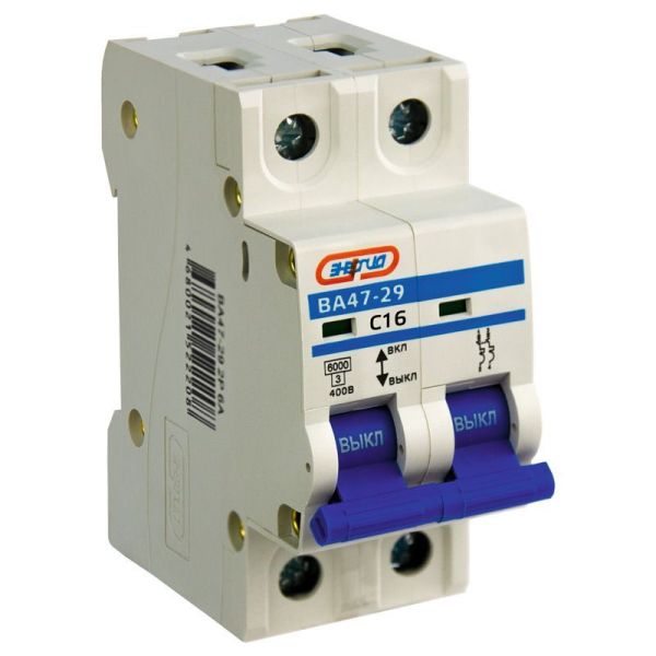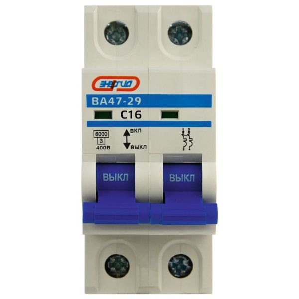 Автоматический выключатель Энергия ВА47-29, 2 модуль, C класс, 2P, 16А, 6кА, (Е0301-0113)
