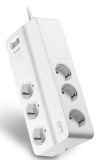 Блок распределения питания со встроеным фильтром APC PM6-RS, вход Schuko CEE 7/7P, выход шесть розеток Schuko CEE 7/7P, 230 В, 10А. SurgeArrest, выполненные на основе металло-оксидных варисторов и плавких предохранителей, мгновенно реагируют на грозовые разряды и короткие замыкания в электропроводке. При повреждении сетевого фильтра вследствие воздействия импульсного перенапряжения указанное перенапряжение не попадает на оборудование. Большинство ограничителей перенапряжений остаются после повреждения цепи в проводящем состоянии. Сетевой фильтр SurgeArrest оснащен светодиодом, сигнализирующим о повреждении внутренних цепей в результате сильного удара или вследствие воздействия импульсного перенапряжения в питающей сети, а также в случае, если фильтр не может обеспечить 100-процентную защиту. Скошенная форма вилки позволяет располагать оборудование и мебель ближе к стенам, чем при использовании стандартных сетевых шнуров. А кроме того, это уменьшает изгибные нагрузки на шнур. Цвет белый.