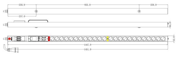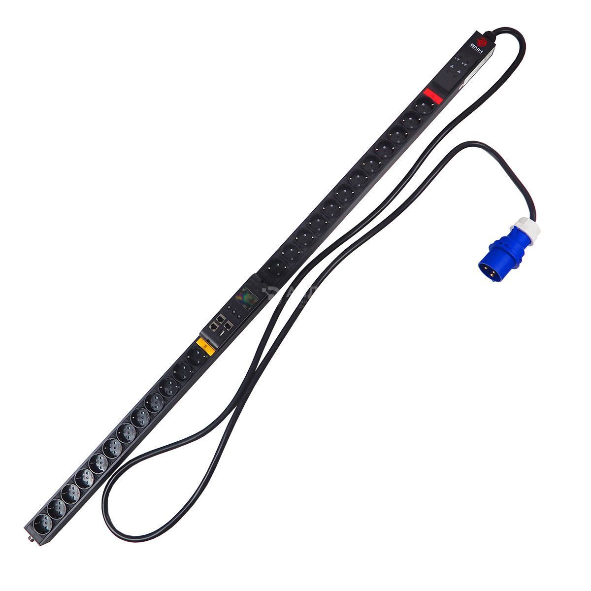Блок распределения питания BNH B800.M, Schuko х24, шнур 3м, 1451х52х44,4 мм(ВхШхГ), 32А, 1ф, вход IEC 309 32A P+N+E, чёрный