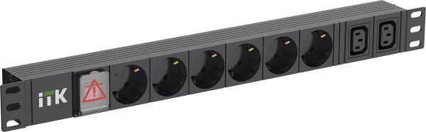 Блок силовых розеток ITK PH12-6D2C133. В основном используется в небольших помещениях с малым количеством оборудования, для установки которого достаточно шкафа 19" или стойки на предприятиях малого бизнеса и у индивидуальных предпринимателей, в небольших административных учреждениях. Питание 230 В, 50/60 Гц. Профиль высотой 1U из алюминиевого сплава.