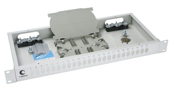 Бокс оптический Cabeus 19’’ FO-19-24-ST предназначен для организации соединения 24 волокон магистрального кабеля с абонентским.