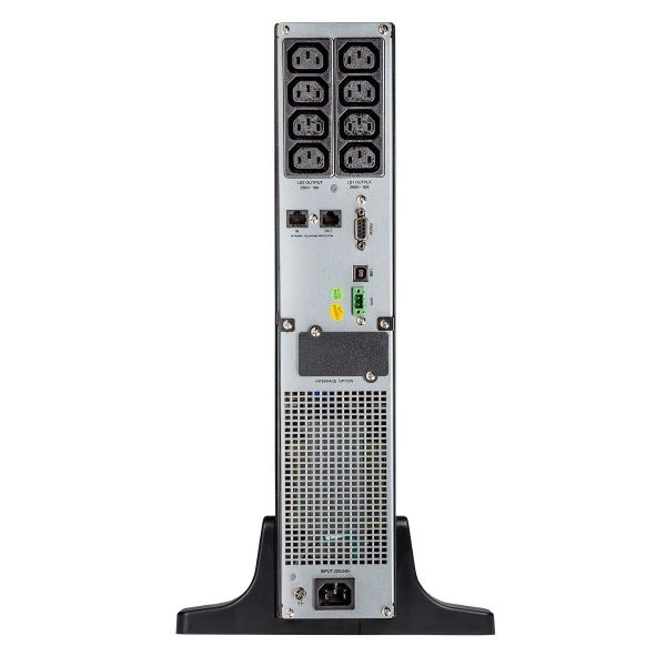 Данный ИБП оснащён расположенными сзади розетками IEC C13 (4 либо 8 шт.), а также имеет вилку питания IEC C14 либо Schuko CEE 7/7P. Старшая модель имеет дополнительную розетку IEC C19. О работе устройства извещают поворотный ЖК-дисплей и звуковые сигналы. Звук включается во внештатных ситуациях и при неисправностях. Управление ИБП осуществляется как с компьютера, так и с помощью механических кнопок на панели управления.