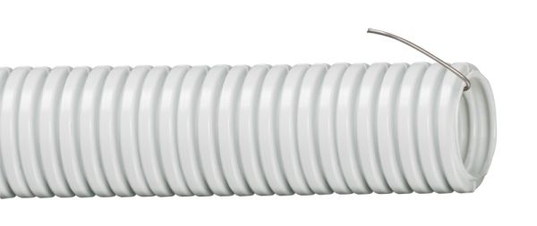 - Гофрированная труба IEK, ПВХ, легкая, D25 мм, с зондом, цвет серый, обвязка, 50 м