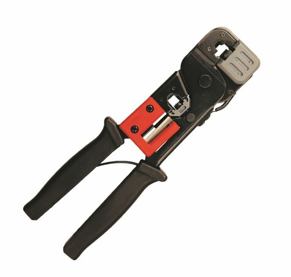 Обжим модульных разъемов формата  RG Ручной обжим и опрессовка электрических контактов без применения пайки Предназначин так же для снятия изоляции, как с плоских, так и круглых кабелей и обрезки проводов Материал изделия: высокопрочная закаленная инструментальная…
