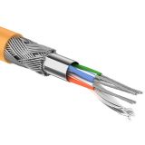Кабель интерфейсный промышленный Rexant 01-9843-2, AL/TCu, 3 пар., кат. 5e, AWG24, нг(А)-LS, 305м, бухта, цвет: оранжевый. Витые пары состоят из многожильных медных лужёных проводников с изоляцией из полиэтилена, заключённые в общий экран из алюминиево-полиэфирной фольги и лужёной медной…