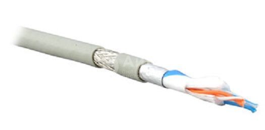 Кабель интерфейсный промышленный Teldor, SF/UTP, 1 пар., кат. 5e, FR-PVC, 1м, 7 жил, проводник проволока из луженой меди, изоляция жил из вспененного полиэтилена высокой плотности Datalene, общий экран из алюминиевой фольги Beldfoil (покрытие 90%) и медной оплетки (покрытие 90%), внешняя оболочка из поливинилхлорида, устойчивого к воздействию УФ излучения.