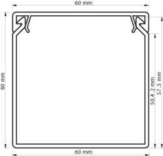 Кабель-канал Рувинил 60х60, артикул РКК- 60х60, без перегородок, применяется для прокладки силовых и информационных кабельных трасс. Материал - самозатухающий ПВХ белого цвета.