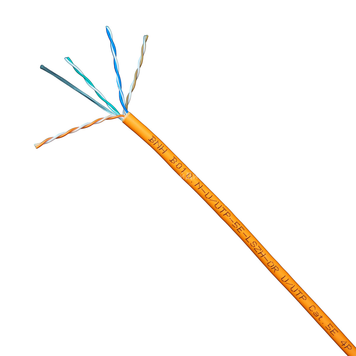 Кабель витая пара BNH, U/UTP, 4 пар., кат. 5е, проводник Ø 0,51мм, AWG24, LSZH (нг(A)-HF), 100МГц, 1м (коробка 305м), тип прокладки: внутри зданий, цвет: оранжевый