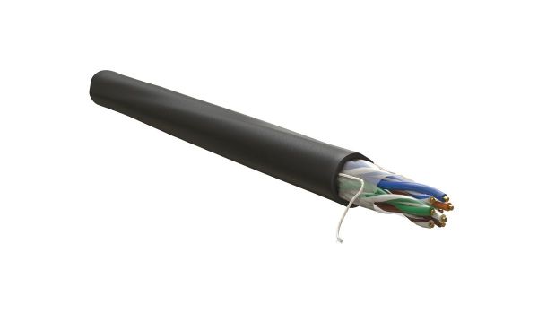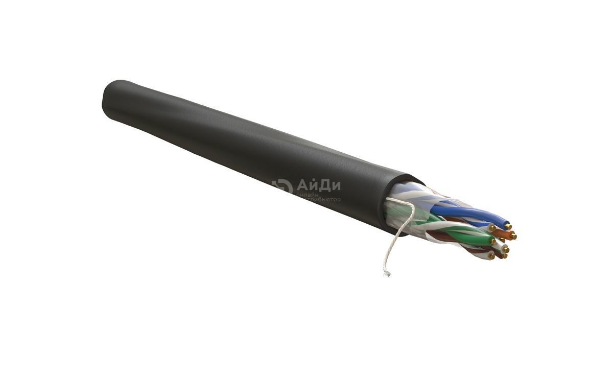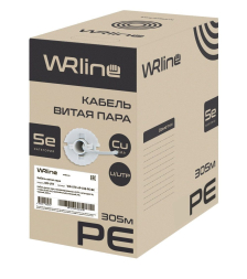 Кабель витая пара WRline, U/UTP, 4 пар., кат. 5е, проводник Ø 0,5мм, AWG24, PE, 100МГц, 1м (коробка 305м), тип прокладки: снаружи зданий, цвет: чёрный