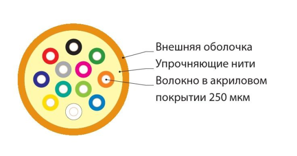 Кабель волоконно-оптический Hyperline Multi Tube,  12хОВ, OM2 50/125, LSZH, Ø 3мм, внутри зданий, диэлектрический, цвет: оранжевый