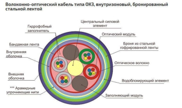 Волоконно-оптический кабель ОКЗ-САО-1/3(2,0)Сп-4(2) (1,5кН) производства Трансвок одномодовый, 4 волокна, внутризоновый, бронированный стальной лентой, прокладка в каб.канализации и тоннелях.