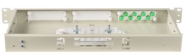 Коммутационная панель ВО Связьстройдеталь ШКОС-Л, 1HU, FC/D/APC, FC/APC , невыдвижная, прямая, цвет: светло-серый, 2 кабельных ввода