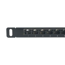 Спереди у патч-панели располагается 24 порта RJ45, к которым могут быть подключены патч-корды. Порты имеют номера от 1 до 24. Также присутствуют площадки, позволяющие наносить дополнительную маркировку.