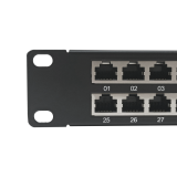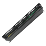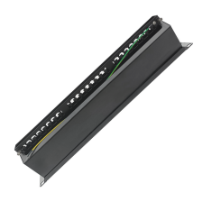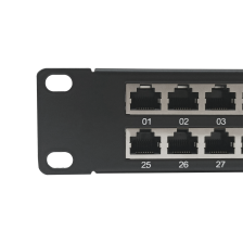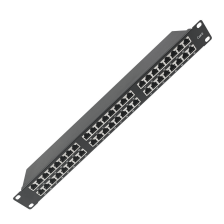 Такую патч-панель возможно устанавливать в 19'' шкафы и стойки. При этом она занимает минимальное пространство по глубине, а по высоте всего 1U. Изделие имеет характеристики категории 6, при полосе пропускания в 250 МГц.