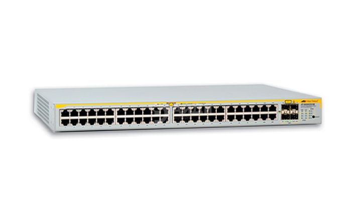 Управляемый стекируемый коммутатор AT-8000GS/48-50, который подходит для наращивания портов на границе сети. Коммутатор оснащён 4-мя совмещёнными слотами SFP для соединений Gigabit Ethernet, а также 2-мя выделенными интерфейсами для стекирования. Управление различными возможностями (агрегация каналов, виртуальные локальные сети, зеркалирование портов) осуществляется на уровне всего стека.
