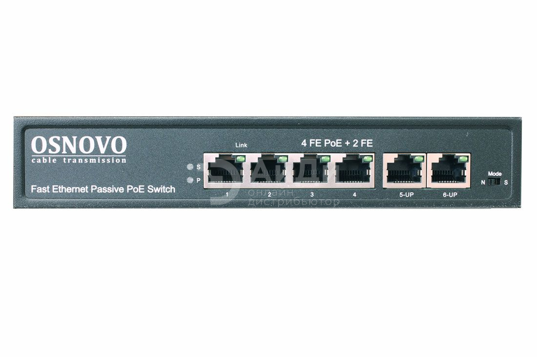 Неуправляемый коммутатор OSNOVO SW-20600/A(80W) общей мощностью PoE 80W, поставляется со встроенной грозозащитой.