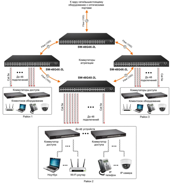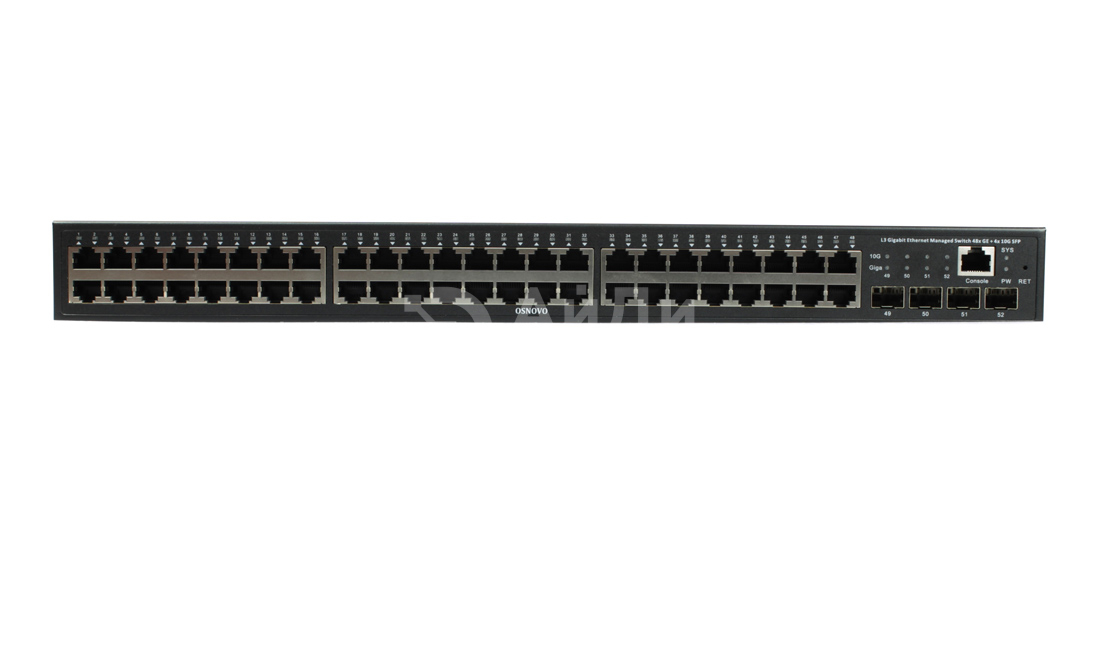 Управляемый L3 коммутатор Gigabit Etherne OSNOVO SW-48G4X-2L. Возможен монтаж в 19” стойку или шкаф, крепление поставляются в комплекте. Устройство обеспечивает питание сетевых устройств, их объединение и передачу данных. Используется коммутатор SW-48G4X-2L на предприятиях малого, среднего и крупного бизнеса, в операторских сетях в качестве коммутатора уровня агрегации района или транспортного коммутатора, а также в высокопроизводительных системах IP видеонаблюдения. Имеется возможность гибкой настройки свойств с помощью WEB-интерфейса. Коммутатор обладает большим запасом производительности благодаря универсальным интерфейсам и неблокируемой коммутационной матрице. Удовлетворительный уровень шума обеспечивается за счет активной системы охлаждения. Коммутатор изготовлен из высокопроизводительных, надежных комплектующих.