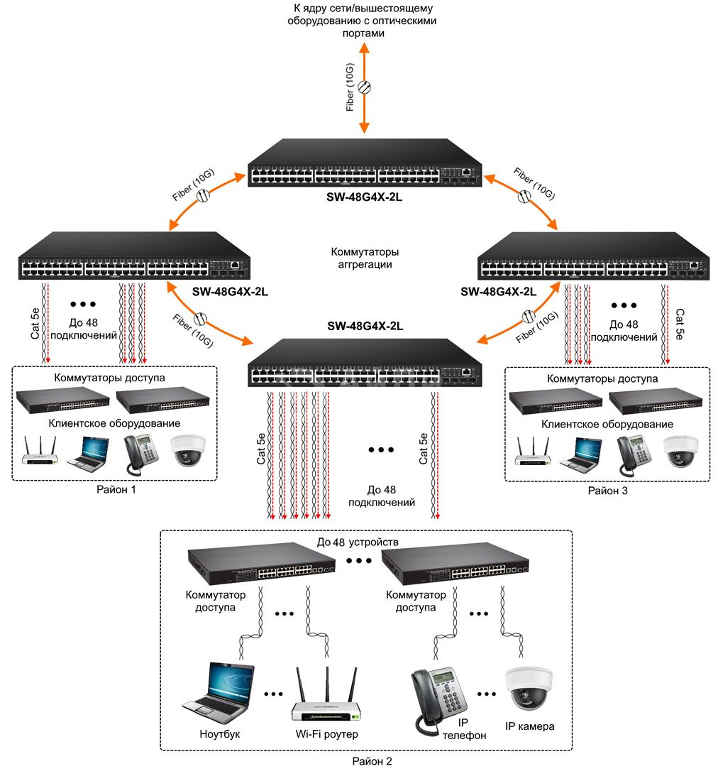 Топологии подключения: Звезда; Каскад; Кольцо.