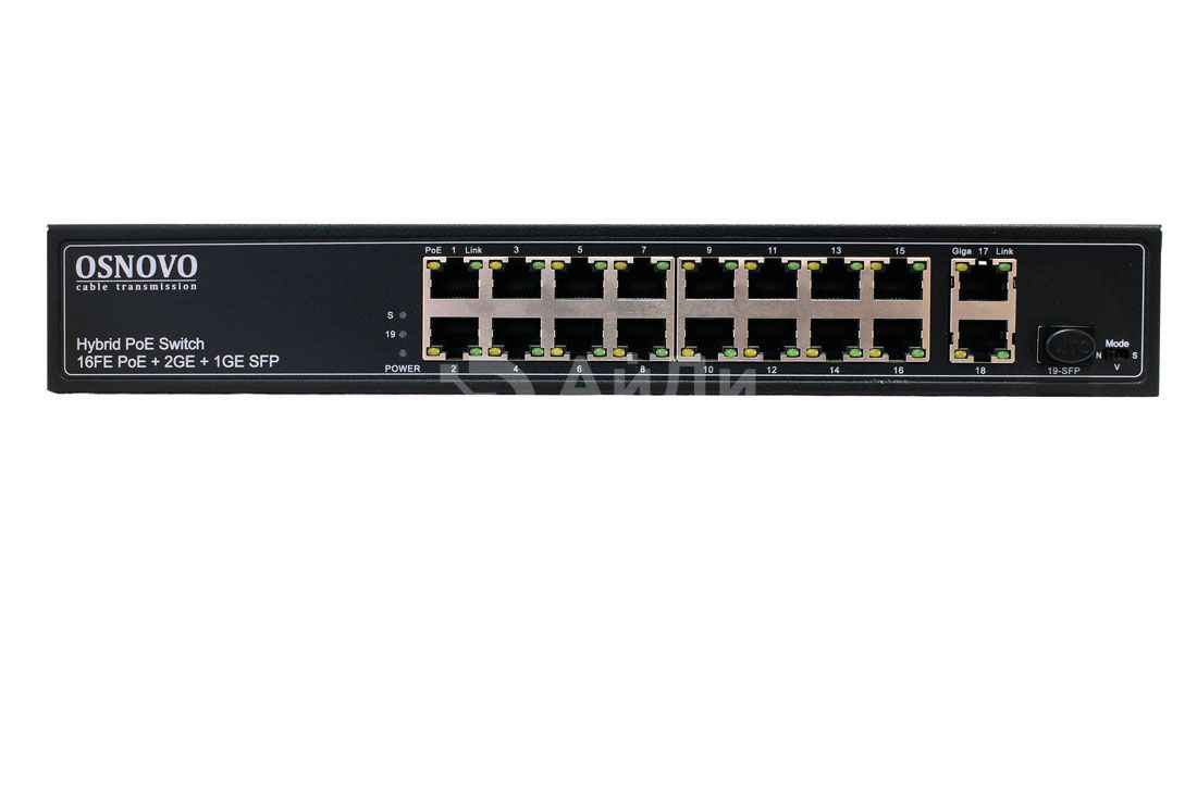 PoE коммутатор OSNOVO SW-61621(300W) на 19 портов.