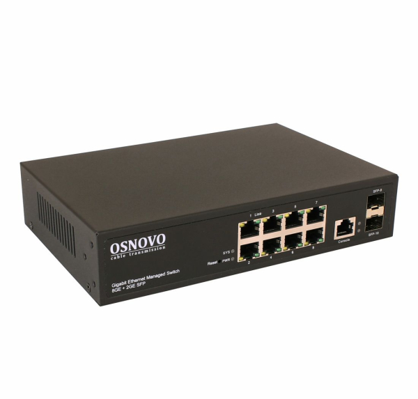 Управляемый коммутатор OSNOVO SW-70802/L2 второго уровня на 10 портов. Управление происходит через консольный порт.