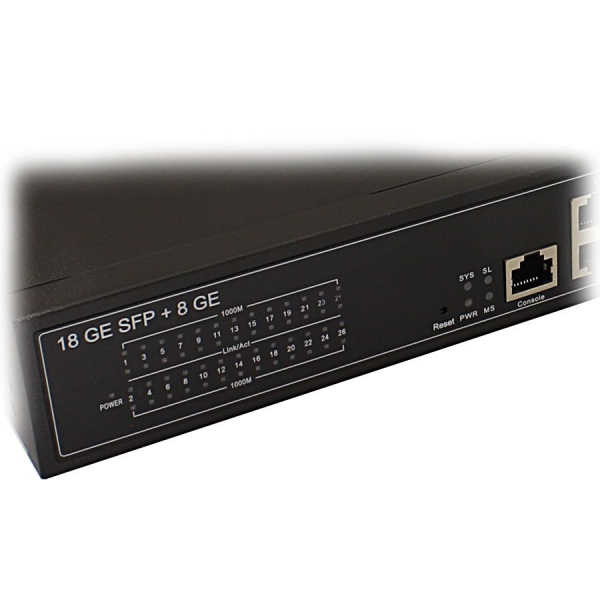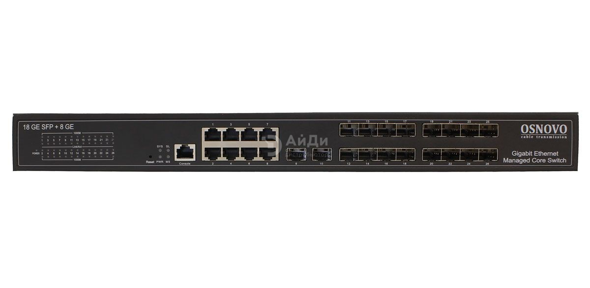 Управляемый коммутатор OSNOVO SW-70818/L2 второго уровня на 26 портов. Управление происходит через консольный порт. Уровень управления Full managed.