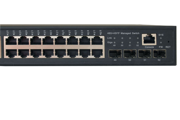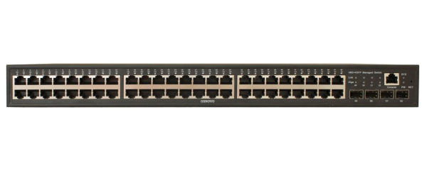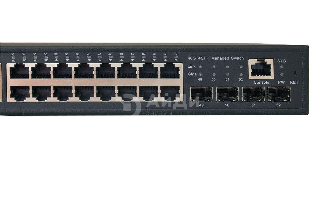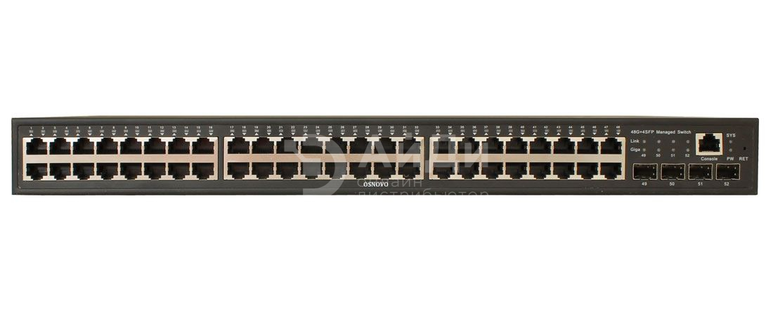 Управляемый коммутатор OSNOVO SW-74804/L второго уровня на 52 порта. Управление происходит через консольный порт. Уровень управления Full managed.