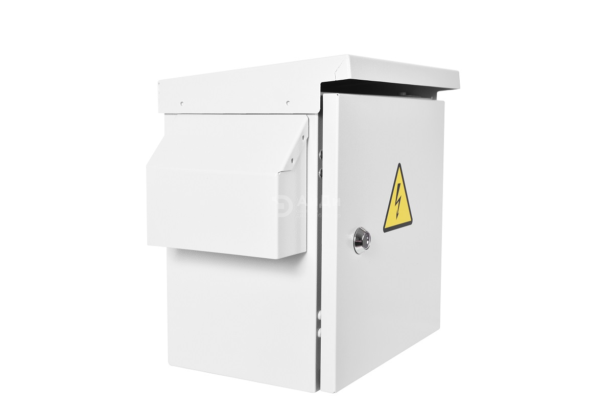 Имеет явно выраженный наклон для предотвращения скапливания воды сзади. Образуемый между шкафом и крышей дополнительный воздушный зазор обеспечивает дополнительную защиту от перегрева и солнечной радиации. Козырек металлический выполнен из оцинкованной стали толщиной 1,5 мм. Установочные размеры изделия (ШхГ) 600х300 мм.