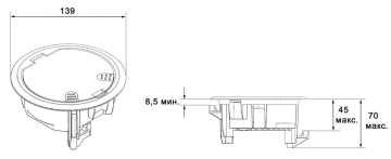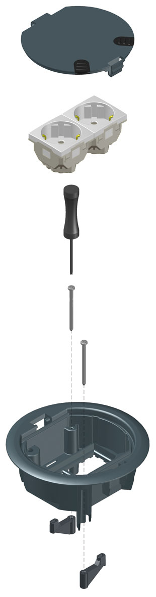 Люк с кромкой, предназначен для установки в мягких напольных покрытиях. Установка до 4-х модулей Две розетки 45мм х 45мм Фиксаторы в комплекте Цвет антрацит…