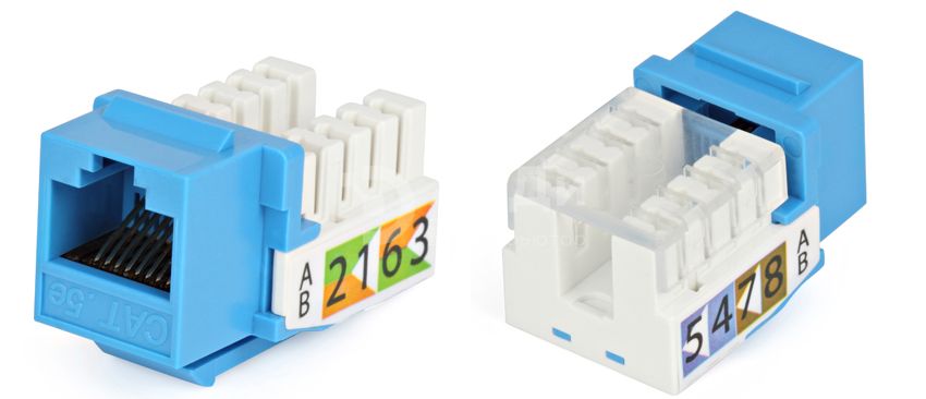Маркировка категории со стороны порта. Цветовая раскладка проводников в соответствии с T568B и T568A