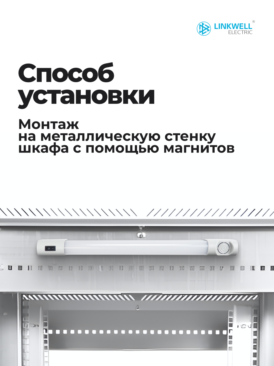 Панель осветительная LINKWELL ELECTRIC, на магнит, 45х390х30 мм (ВхШхГ), 230V, для шкафов, поликарбонат, цвет: белый, с выключателем, LCL-6W-230-C