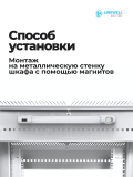 Светильник имеет специальные кронштейны на магнитах, которые позволяют крепить его к любой металлической поверхности. Таким образом, при обслуживании монтажного шкафа, светильник может быть использован в качестве мобильной переносной лампы освещения. Предназначен для эксплуатации при температуре от -30С до +50 С. Мощность панели, в зависимости от исполнения, составляет 6 Вт. Расчитана на 20000 часов использования.