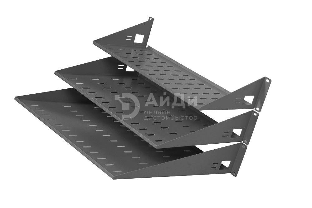 Полка ЦМО МС, перфорированная, консольная, 2U, 89х486х300 мм (ВхШхГ), нагрузка до 15 кг, для шкафов и стоек, цвет: чёрный
