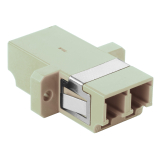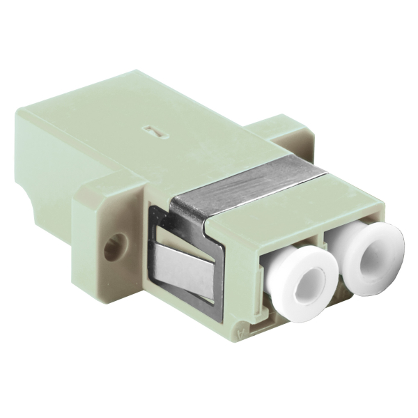 Проходной адаптер оптический BNH, LC/LC (MM), Duplex, с фланцем, бежевый, белый колпачок