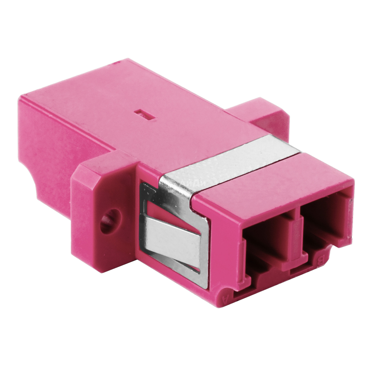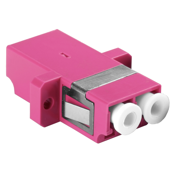 Проходной адаптер оптический BNH, LC/LC (MM), Duplex, с фланцем, пурпурный, белый колпачок