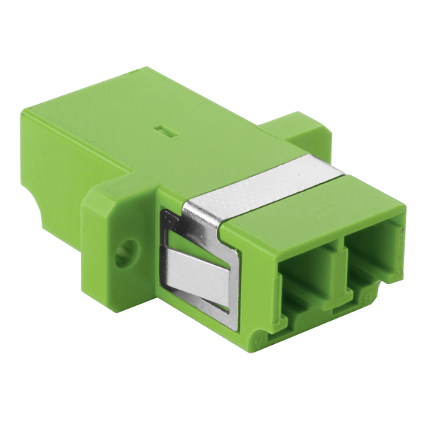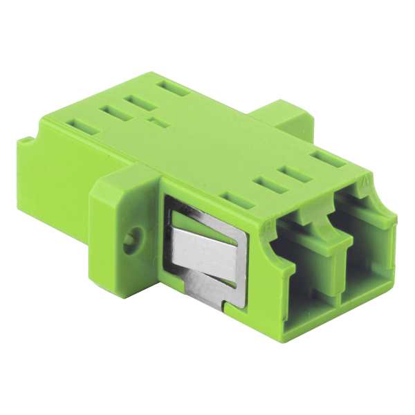 Проходной адаптер оптический BNH, LC/LC (MM), Duplex, с фланцем, лайм, белый колпачок