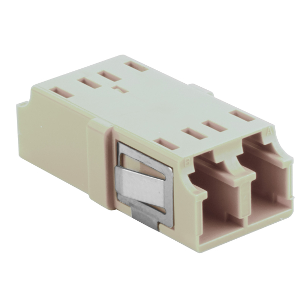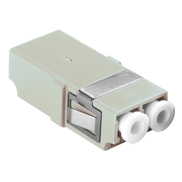Проходной адаптер оптический BNH, LC/LC (MM), Duplex, без фланца, бежевый, белый колпачок