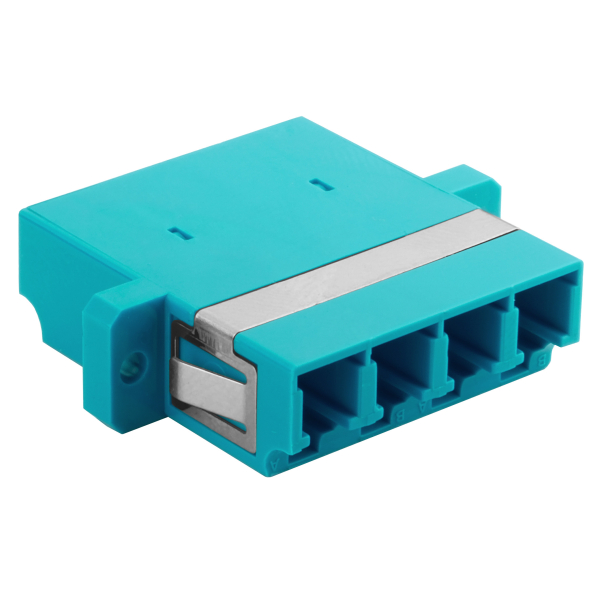 Проходной адаптер оптический BNH, LC/LC (MM), Quadro, с фланцем, бирюзовый, белый колпачок