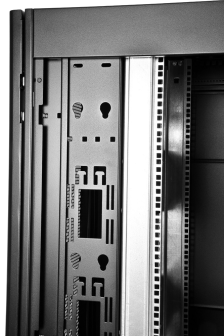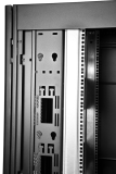 Внутри шкаф оснащён 4 вертикальными направляющими, которые можно регулировать по глубине. На юнитовые направляющие нанесена маркировка, облегчающая монтаж. В стандартном комплекте есть система заземления. Профиль вертикального швеллера дополнен улучшенной перфорацией, что позволяет использовать дополнительное пространство для монтажа разнообразных аксессуаров. Изделие поставляется разобранным в картонных коробках. Комплект поставки включает 2 транспортных места.
