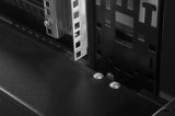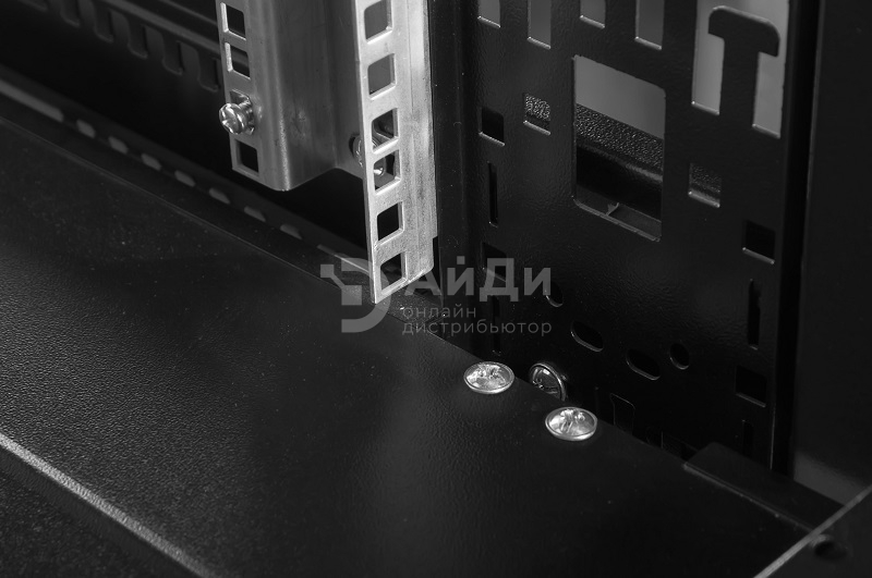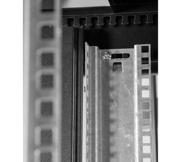 Для придания большей устойчивости несколько серверных шкафов Colocation можно объединить друг с другом, например, выстроив ряд из таких шкафов. При установке оборудования следует исключить нагрузку на полку, разделяющую отсеки шкафа.