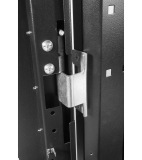 Двери напольного серверного шкафа 19'' ШТК-СП-К перфорированы на 65% от общей площади. Это способствует свободному передвижению воздушных масс, которые помогают охлаждать установленную аппаратуру. Передняя и задняя дверь в каждом отсеке закрывается индивидуальным ключом. Навеска дверей возможна с любой из сторон. Снять дверцы при необходимости очень легко. Для этого не потребуется специальный инструмент.