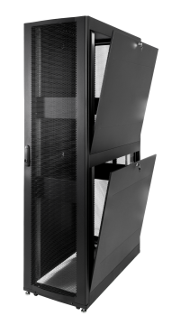 Передняя дверь металлическая с увеличенной до 63% площадью перфорации. Может навешиваться как справа, так и слева. Сзади также имеется перфорированная дверь. Двери закрываются усиленными точечными замками. С боков устанавливаются двойные стенки, разделённые по горизонтали. Стенки удерживаются при помощи защёлок и точечных замков. При снятии боковых стенок доступ к установленным серверам возможен с четырёх сторон.