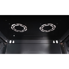 Передняя дверь стеклянная (толщина закалённого стекла 4 мм). Закрывается усиленным точечным замком. Угол открывания двери — 230°. Юнитовые 19'' направляющие в количестве четырёх штук изготовлены из 1,4 мм стали, и имеют регулировку по глубине.