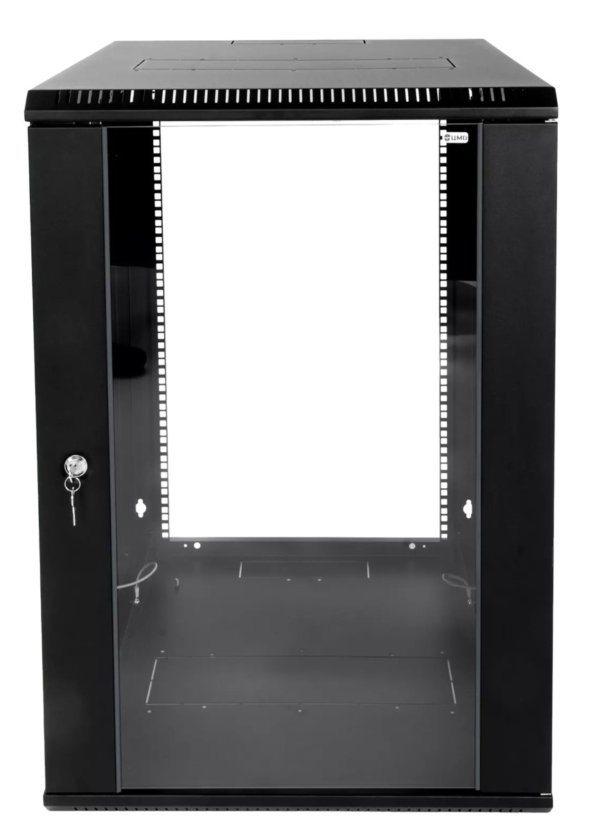 Шкаф телекоммуникационный настенный ЦМО ШРН-Э, 19", 12U, 608х600х520 мм (ВхШхГ), дверь: стекло, боковая панель: сплошная съемная, разборный, цвет: чёрный