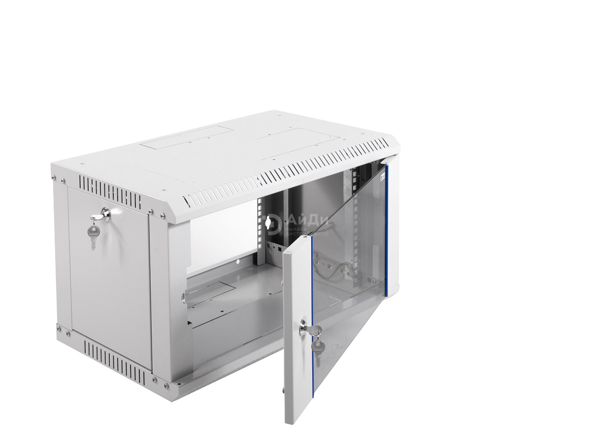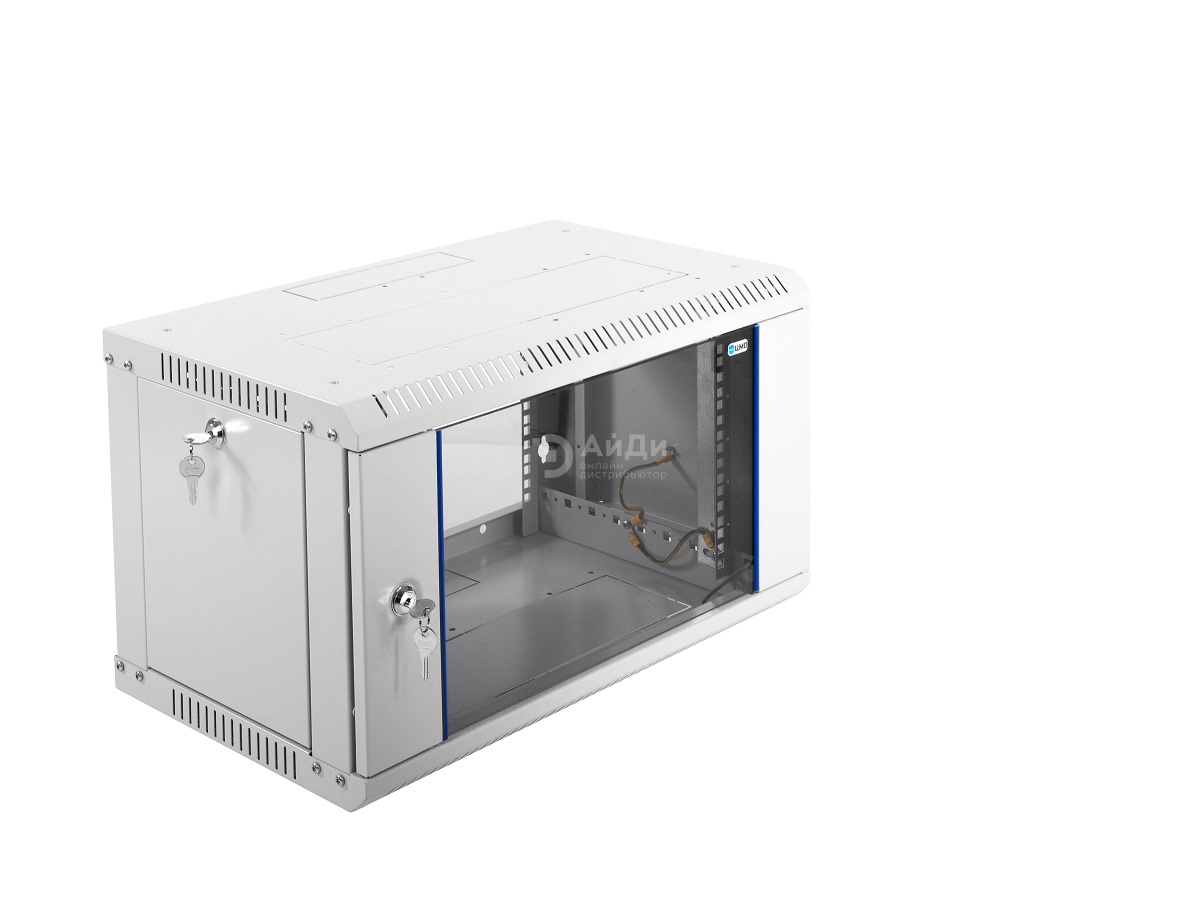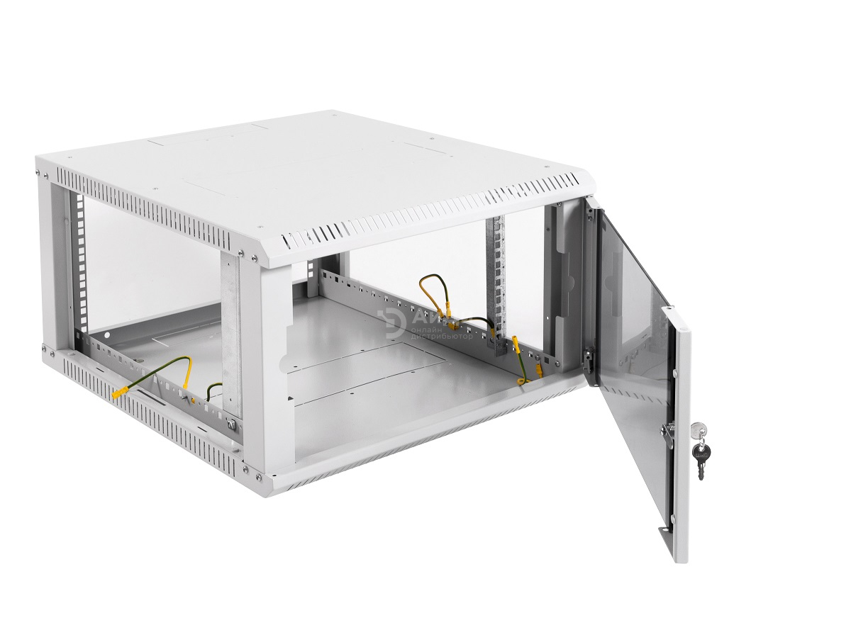 Шкаф телекоммуникационный настенный ЦМО ШРН-Э, 19", 6U, 342х600х350 мм (ВхШхГ), дверь: стекло, боковая панель: сплошная съемная, разборный, цвет: серый