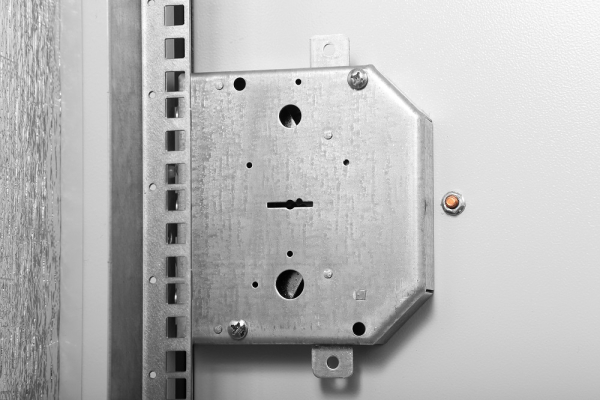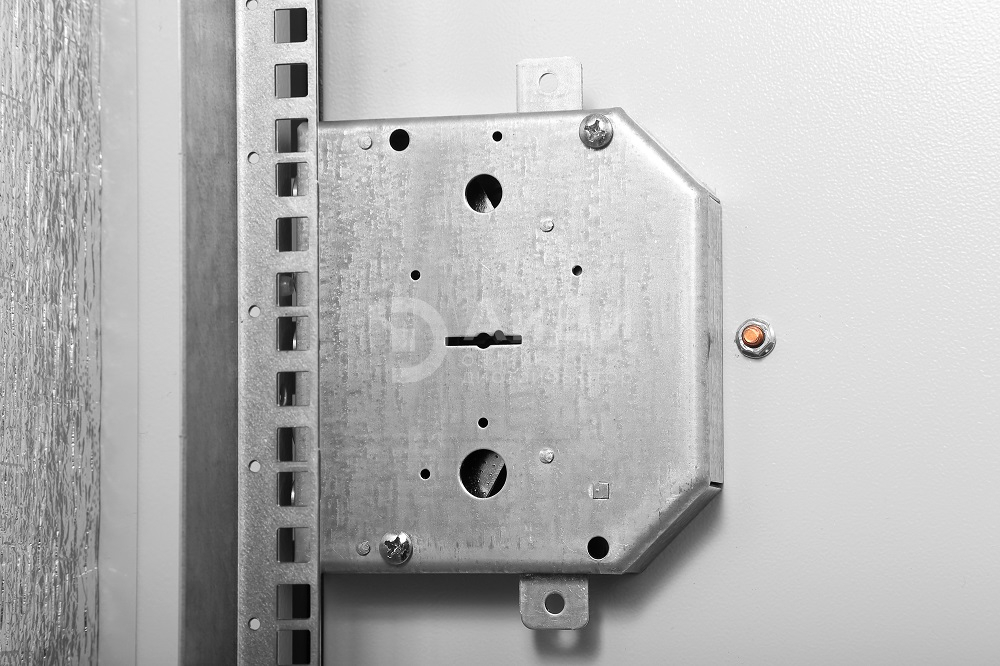 Штатный цоколь высотой 100 мм может заменяться на цоколи с окнами, высотой 300 или 600 мм. Через окна в цоколе открывается свободный доступ к кабелям, которые могут быть легко организованы так, как требуется. В основании шкафа имеются четыре втулки М12, через которые выполняется фиксация изделия к полу.
