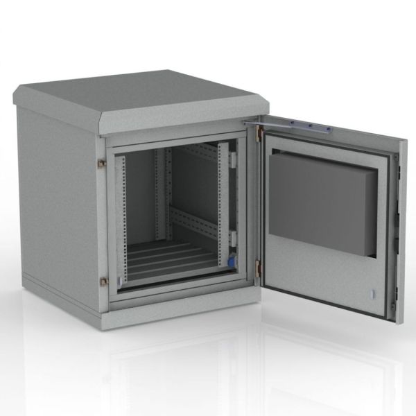 • Крыша: быстросъёмная, обеспечивает отличную циркуляцию воздуха, не допуская проникновения жидкостей внутрь шкафа. Под крышей имеются 4 рым-болта для возможного перемещения шкафа с помощью крана.