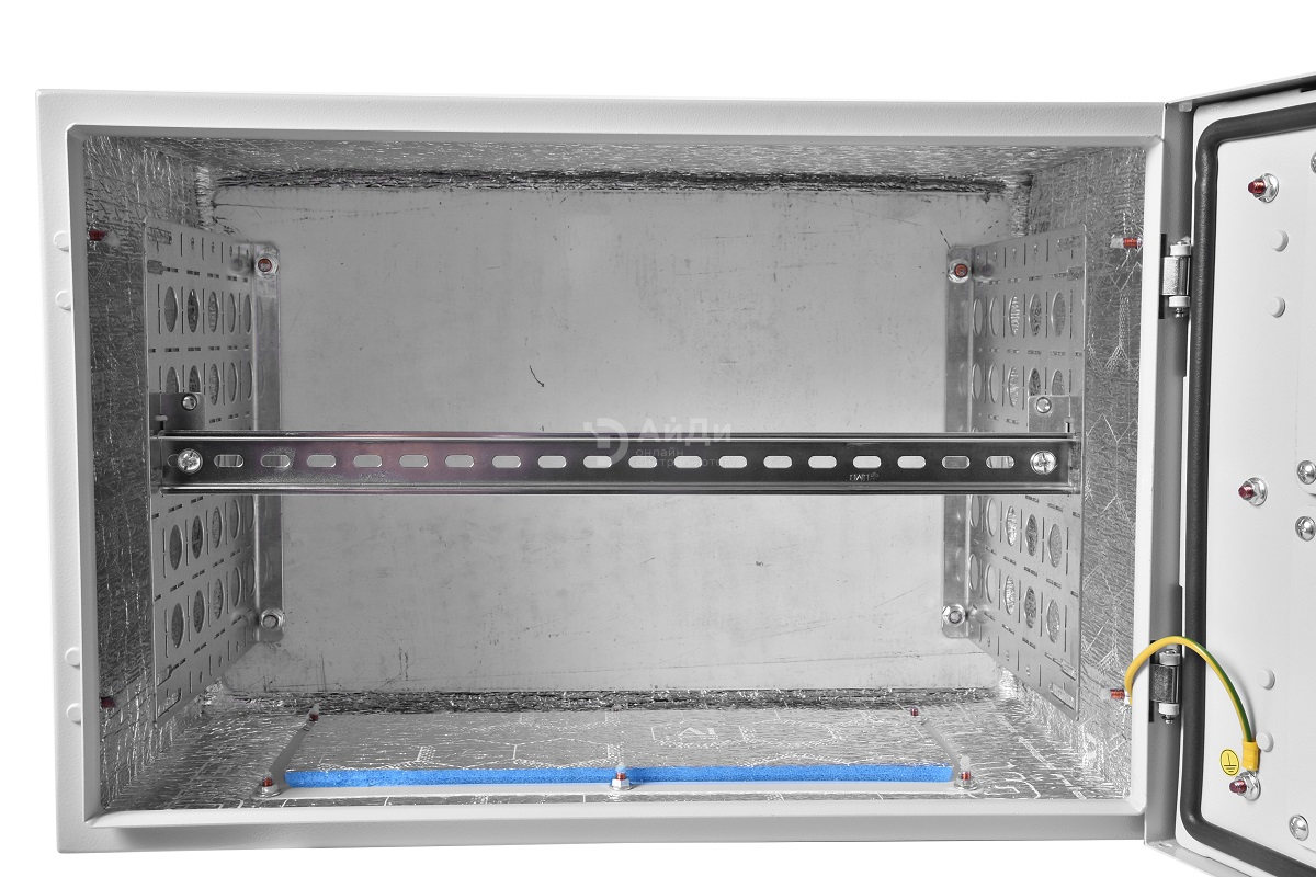 Всепогодный настенный шкаф имеет сварной металлический корпус покрытый слоем цинковой грунтовки, изнутри фольгированный утеплитель. Обработка методом холодного цинкования увеличивает срок эксплуатации изделия. На дверь могут устанавливаться вентиляторы МВ-400-2 и фильтр МВ-Ф. Внутри имеется DIN-рейка для установки термостата, гигростата и других датчиков. Изделие комплектуется задней панелью и юнитовыми панелями 19''.