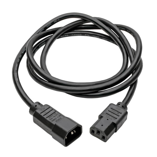 Компьютерный шнур питания от Tripp Lite (артикул: P004-006). Применяется для соединения двух устройств с разъемами питания C13/C14. Также используется для удлинения имеющегося силового соединения на 1,83 м. Обеспечивает питание компьютеров, принтеров и другой необходимой периферии.