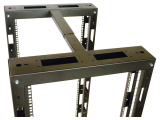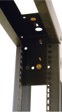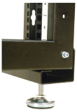 Открытые стойки просто соединяются друг с другом. Делается это через вертикальный органайзер, служащий для укладки кабелей. Изделие может крепиться к полу или устанавливаться на винтовые опоры. Для надежной установки предусмотрены специальные опорные кронштейны.