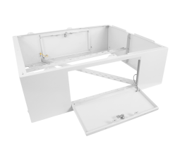 В передней и задней части цоколя (со стороны дверей) имеются съемные дверцы из стали 1,5 мм, которые закрываются на замки с индивидуальными ключами. Они позволяют получить доступ, а также облегчают обслуживание и монтаж данных шкафов.